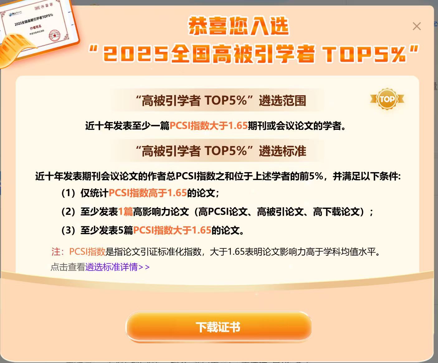 喜报:我院胡亦名副教授入选“2025全国高被引学者TOP5%”