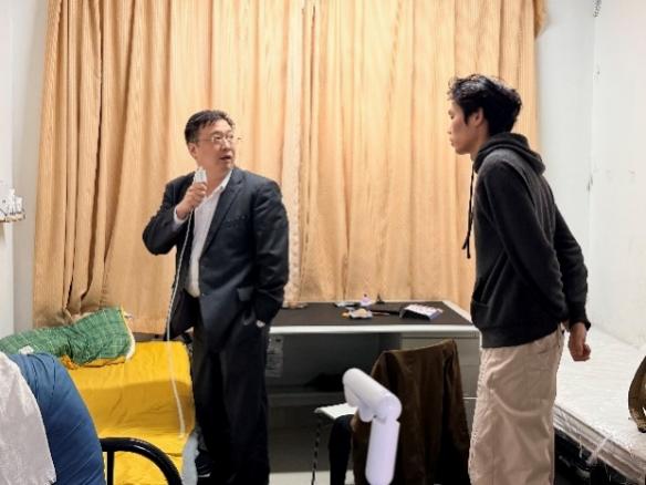 在此次检查中,老师们逐间查看国际生们宿舍居住环境,重点围绕用电安全展开细致排查,全面检查宿舍内电器使用规范、线路老化隐患等情况。同样室内吸烟问题也作为此次安全检查的重要内容进行重点排查,详细向同学们宣讲室内吸烟的严重危害,明确强调宿舍属于人员密集场所,严禁在室内吸烟,要求大家自觉遵守禁烟规定,共同守护宿舍公共安全。检查之余也关注国际生们宿舍卫生整洁度与物品堆放秩序,现场叮嘱同学们要牢固树立安全防范意识,自觉遵守宿舍管理规定,共同营造安全、整洁、温馨的居住氛围。与此同时,在与国际生们的交流中,细致询问大家近期学习生活状况、文化适应情况及遇到的困难与需求,耐心倾听心声与诉求。结合期末临近的关键节点,老师们再次着重强调期末考试要求,鼓励同学们合理规划复习时间、调整备考状态,以扎实学识和端正态度迎接考试,力争取得理想成绩。