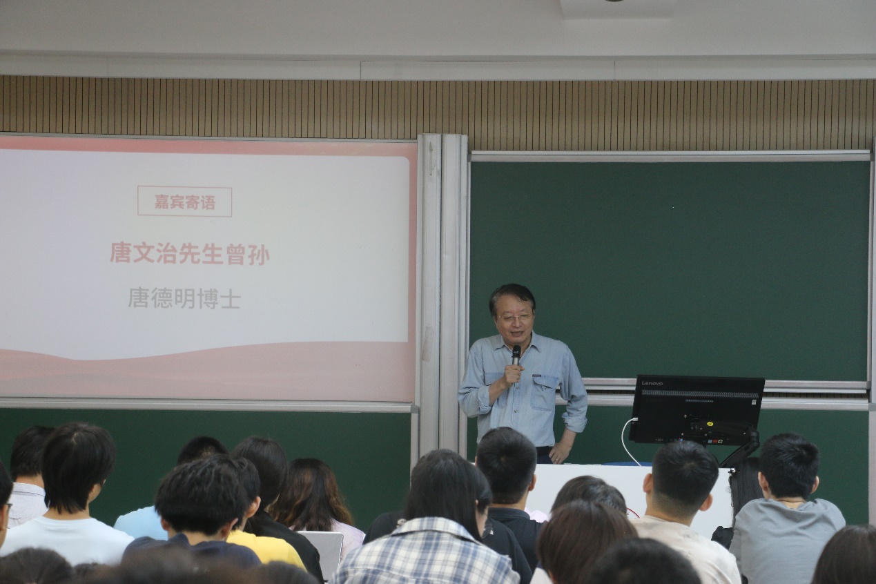 唐调吟诵的创始人,著名教育家、工学先驱、国学大师唐文治先生的后人唐德明先生作为嘉宾出席了此次活动。唐德明先生介绍了唐文治先生在现代教育史上的历史贡献和地位,他说,我们学习和传承唐调吟诵,不仅要学会这样一种读文法,更要学习唐文治先生科学和道德并重的教育思想。