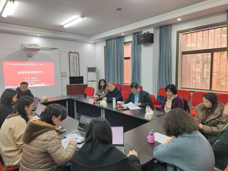 1月6日,沪江学院召开党总支理论学习中心组(扩大)会议,特别邀请上海公共外交协会理事长李文辉莅临会场,为全体党员作台海关系专题学习报告。会议由学院副院长朱慧锋主持,全体党员出席。