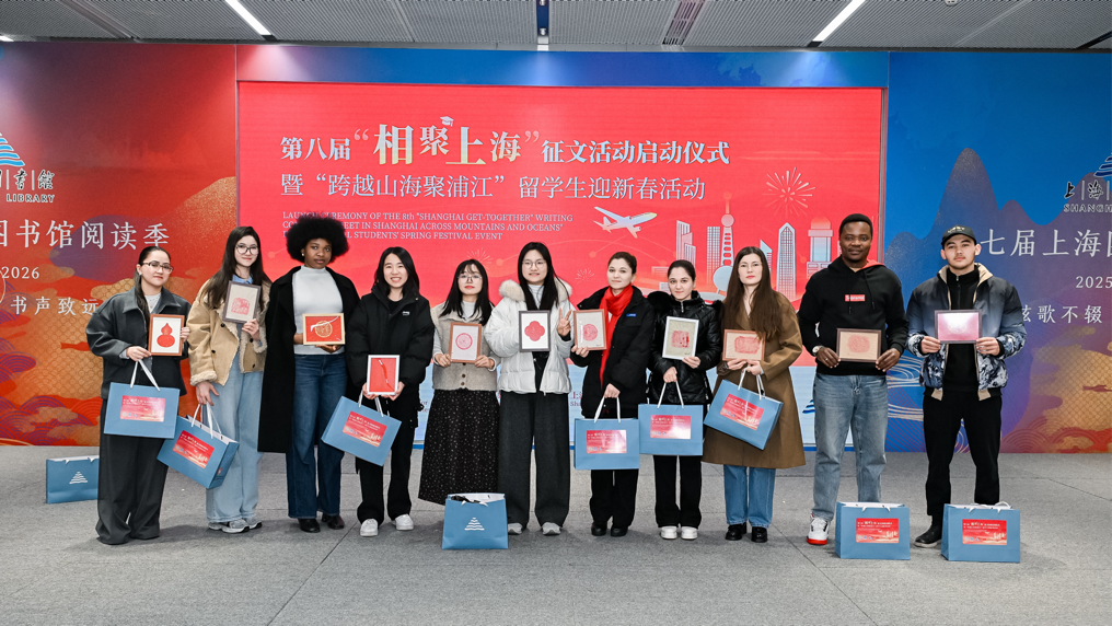 应上海市人民对外友好协会邀请,2026年1月29日,上海理工大学沪江学院组织10名国际学生,赴上海图书馆东馆参加第八届“相聚上海”征文活动启动仪式暨“跨越山海聚浦江”留学生迎新春活动,此次参与学生来自肯尼亚、赤道几内亚、土库曼斯坦、缅甸、印度尼西亚等国家。上海市人大常委会副主任、上海市友协会长陈靖等领导出席活动。