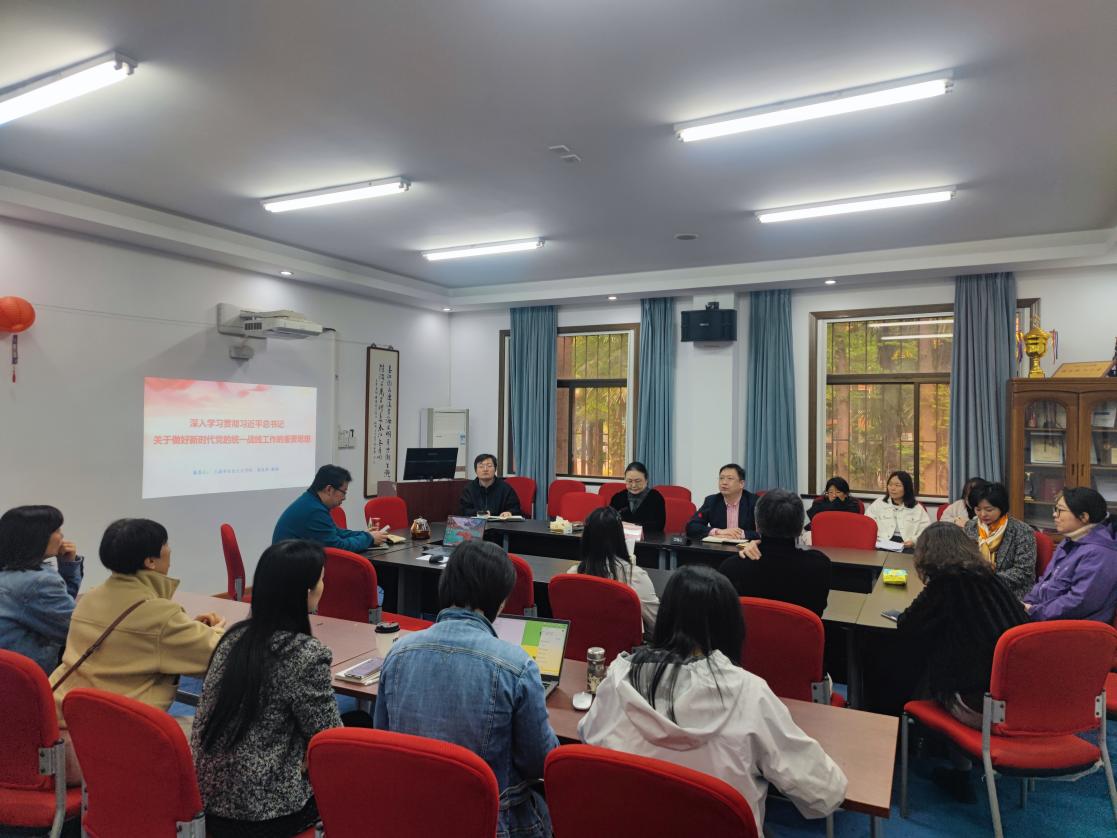 为深入推进树立和践行正确政绩观学习教育,做好新时代党的统一战线工作。4月21日,沪江学院党总支召开了主题为“学习贯彻习近平总书记关于做好新时代党的统一战线工作的重要思想”的理论学习中心组(扩大)会议。此次会议特别邀请到上海市社会主义科学院蒋连华教授作专题报告。本次会议由沪江学院副院长朱慧锋主持。学院全体教师与会。